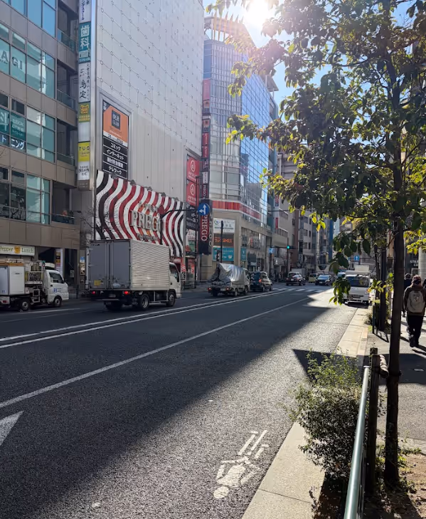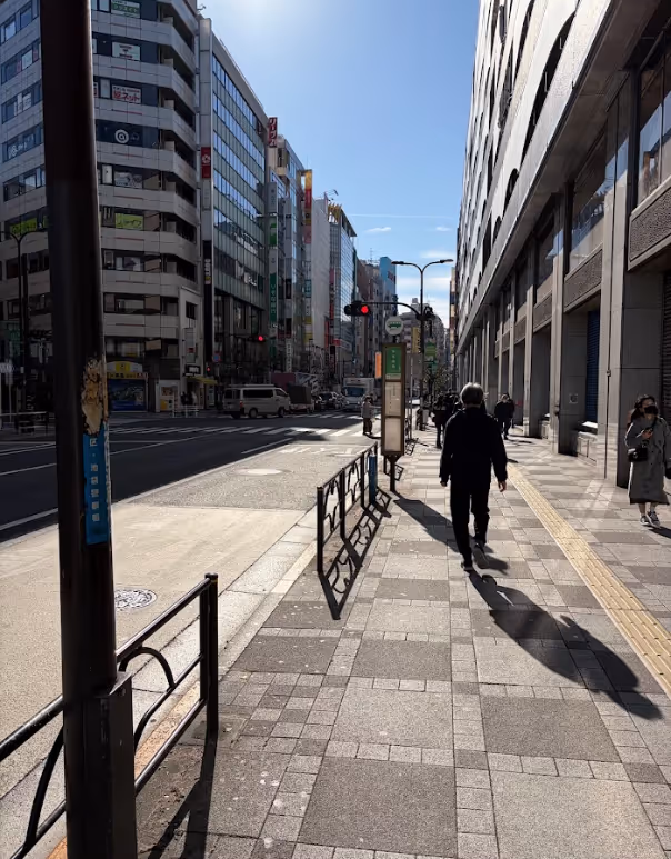 42番出口の階段から地上に上がり、明治通りを道沿いに進んでください。
