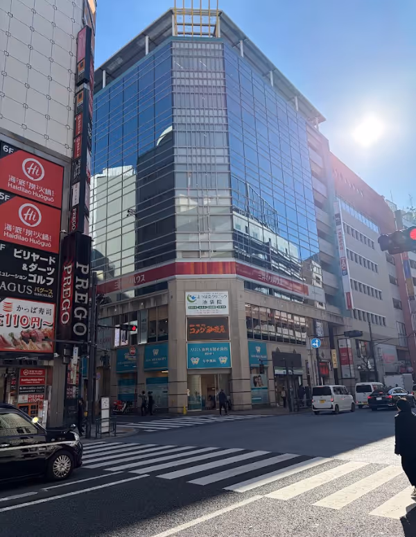 2つめの信号の左手奥にあるのが当院のビルです。(無印良品西武池袋店の真向かいです)