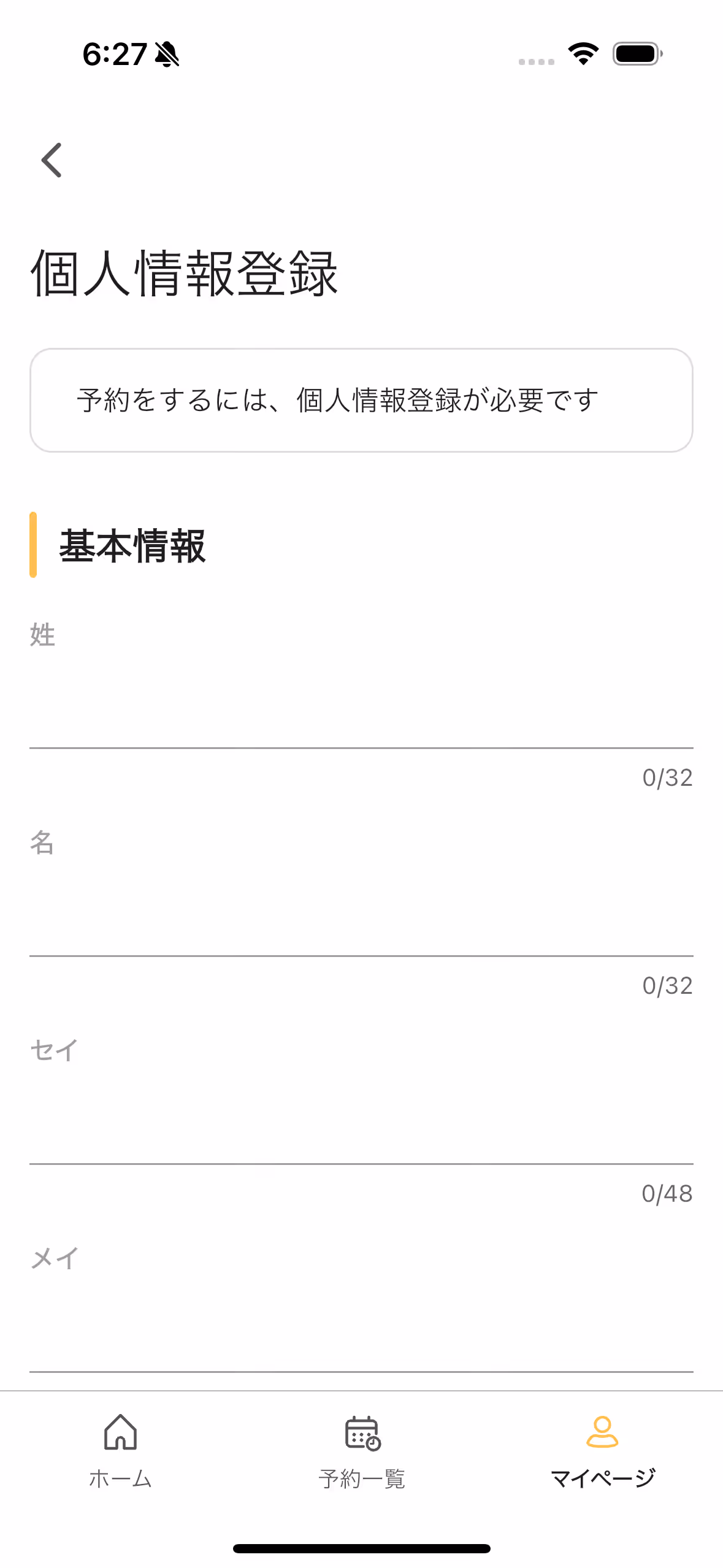 お名前、生年月日、ご住所などの連絡先の登録を行なってください。