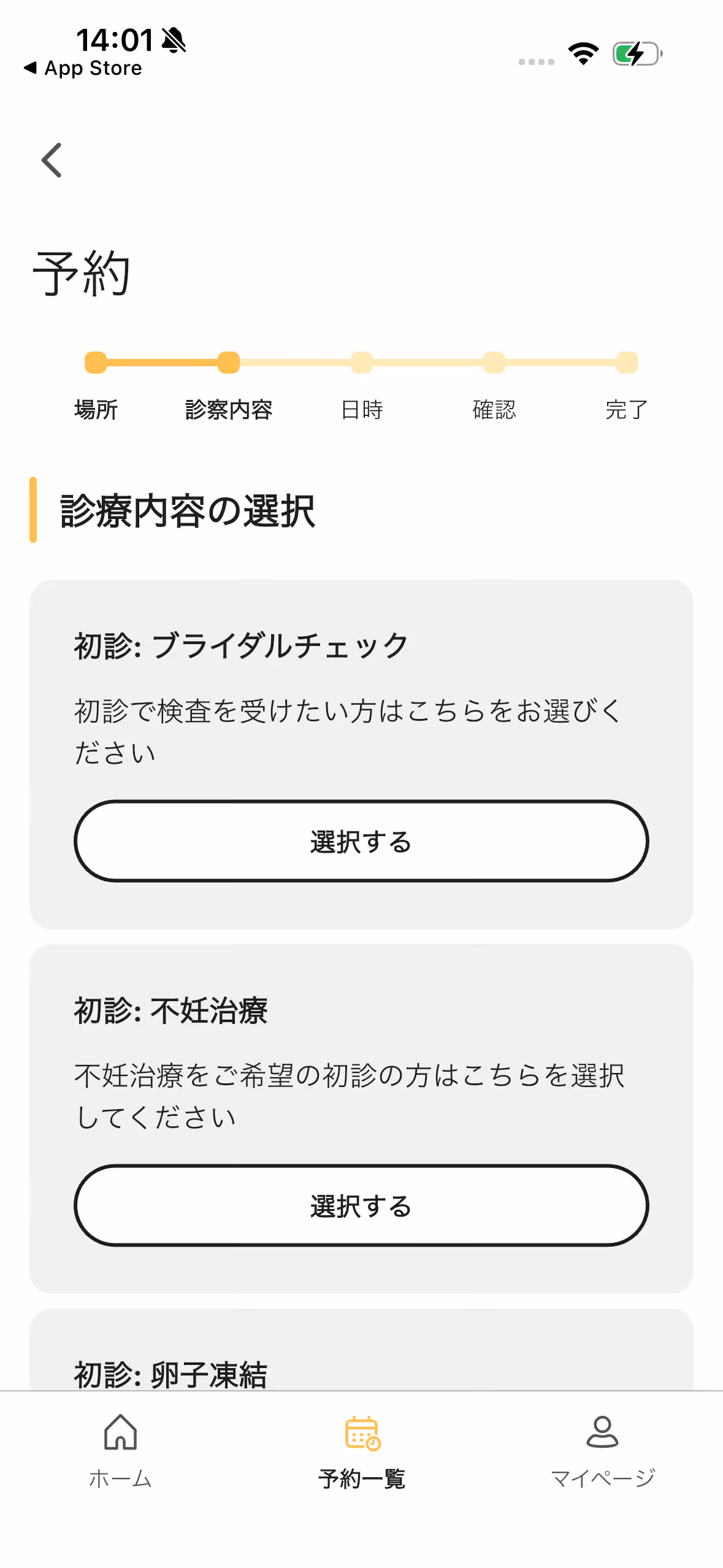 5.診察予約へ進み、クリニックを選択